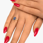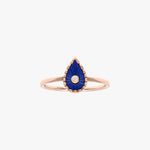 Axana, in its small model version, is a delicate ring that highlights a small drop of Lapis Lazuli, hand-carved by a jeweler, subtly surrounded by a textured outline and illuminated by a natural diamond at its center.