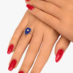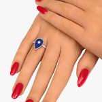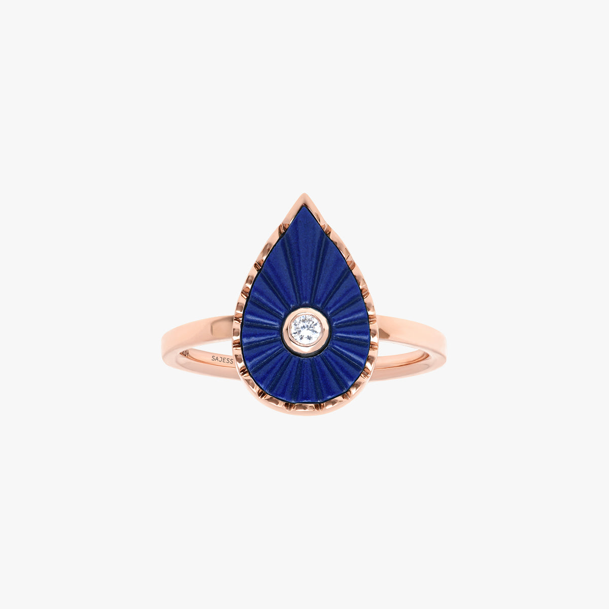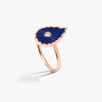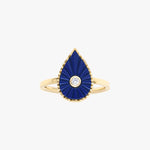 The Axana ring, in its large model version, reveals the full depth of the Lapis Lazuli, hand-carved by a jeweler. Its stone, of an intense and captivating blue, is highlighted by a textured outline, accentuating its unique character.