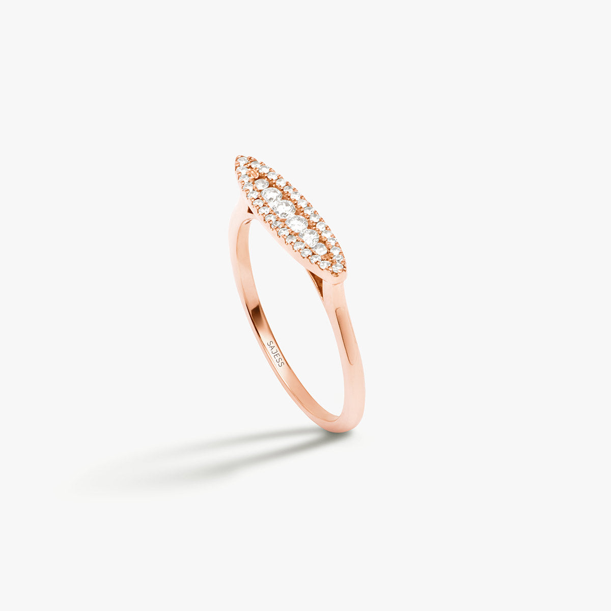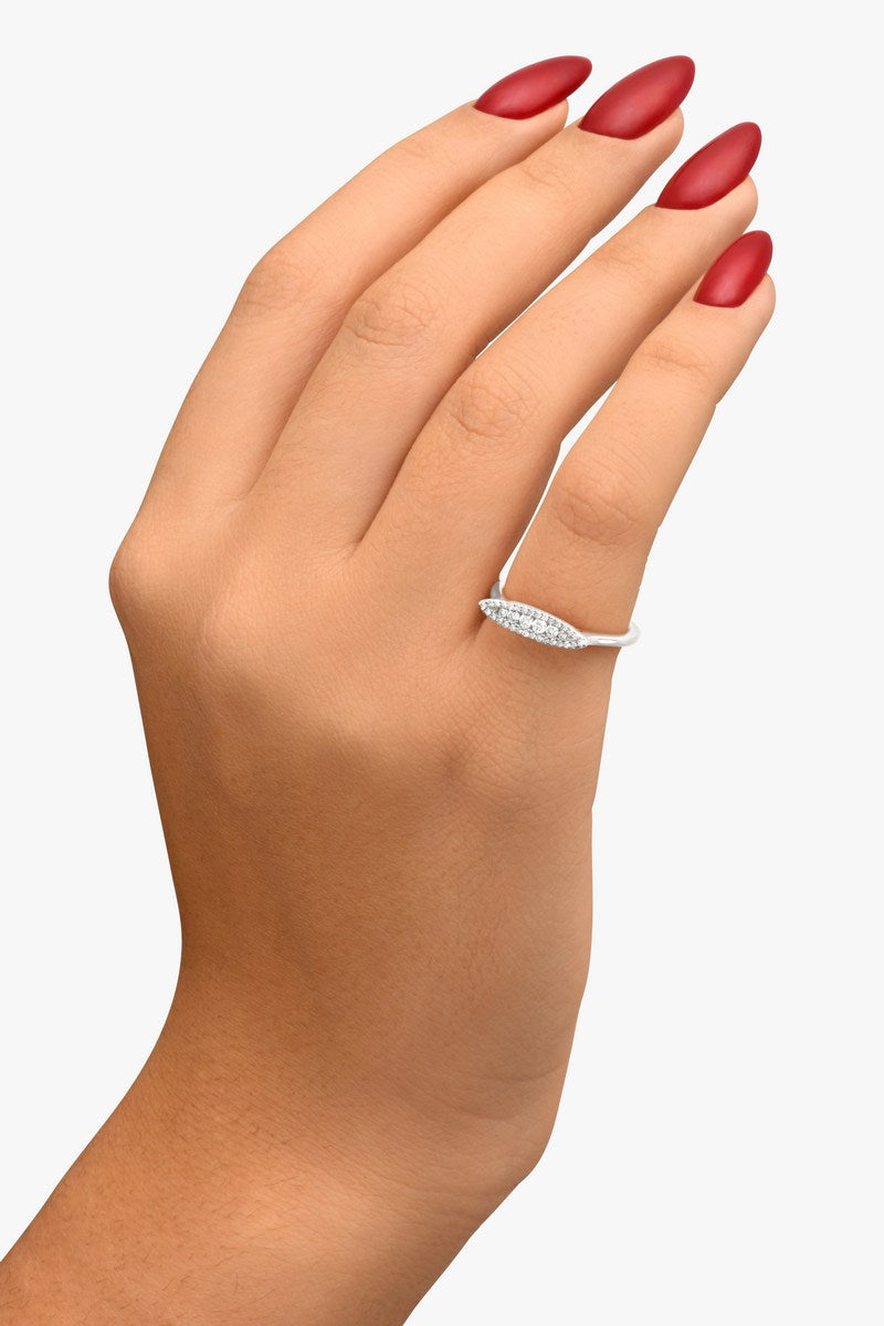 L'élégance moderne dans sa forme la plus pure. La bague Augustine au design minimaliste est en forme de chevalière et se distingue par un pavage subtil de 36 diamants, apportant éclat et raffinement à chaque mouvement.