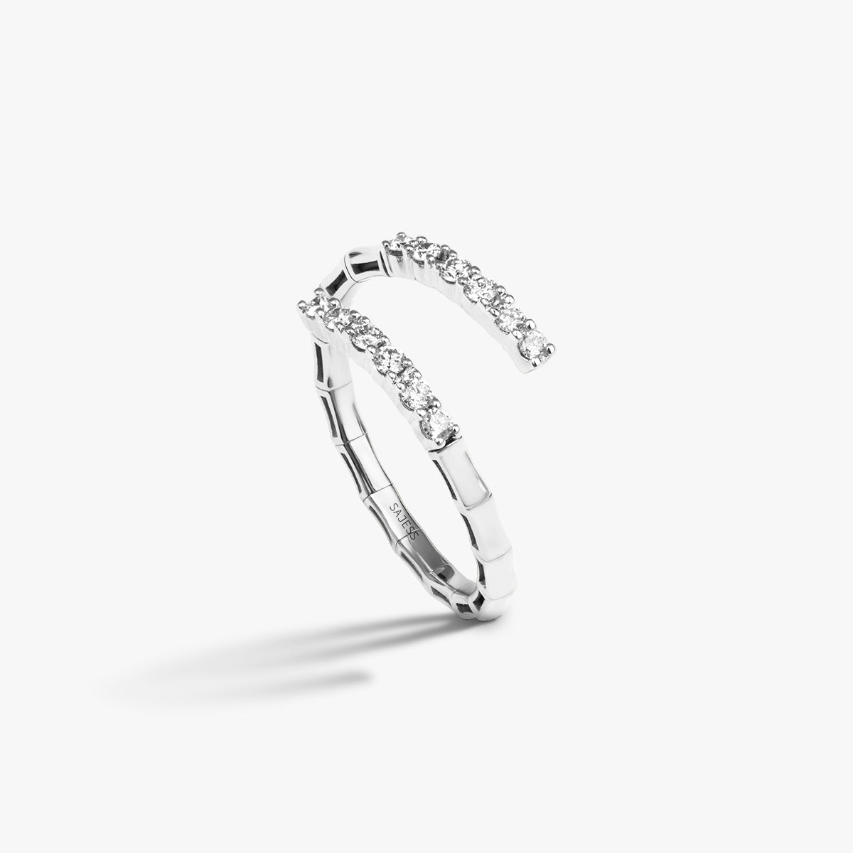 Avec sa silhouette torsadée et ajourée, la bague Jeannine au design épuré se distingue par son élégance contemporaine.