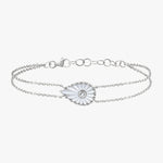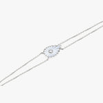 La pierre irisée, éclatante de douceur, est sublimée par le double rang de chaîne, ajoutant une dimension de raffinement.