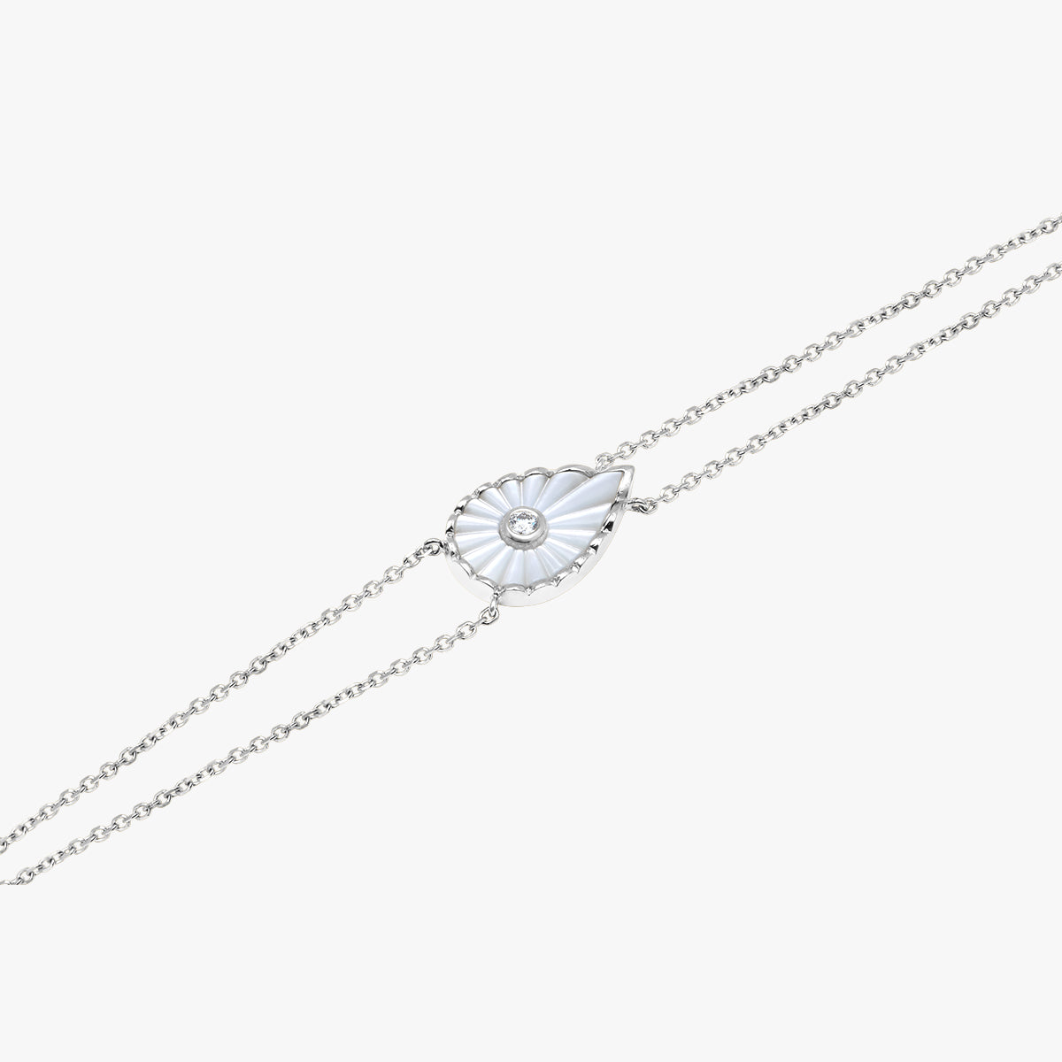 Élégant et lumineux, le grand modèle du bracelet Myrtho met en valeur une goutte de nacre, entourée d’un contour finement texturé.