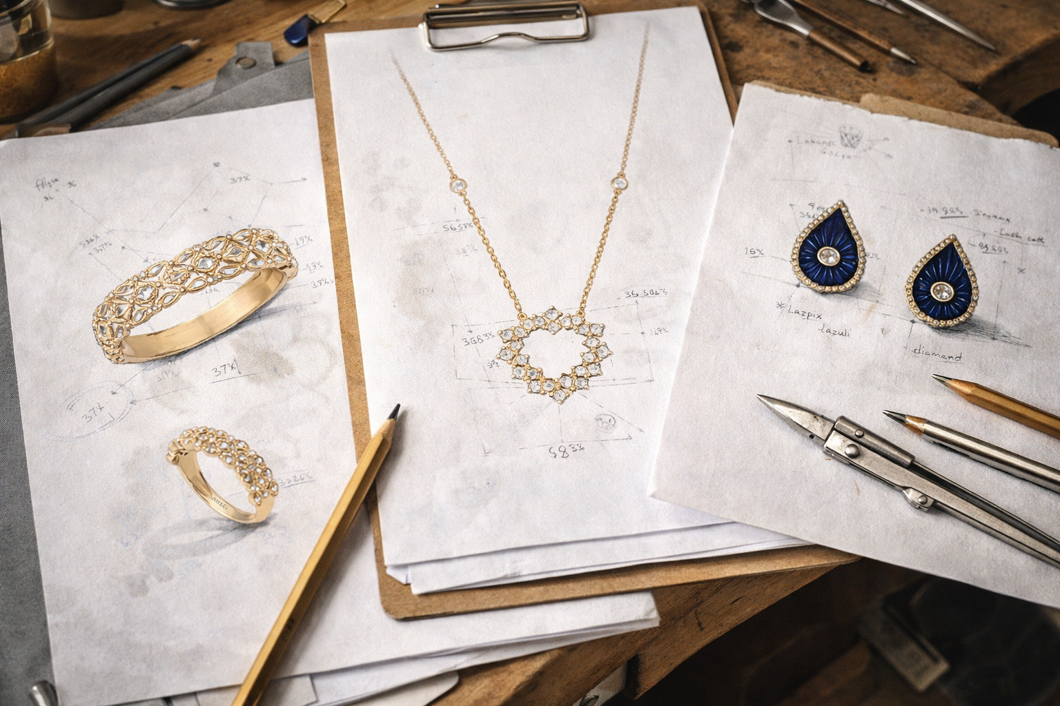 Chez Sajess, nous vous offrons la possibilité de concevoir un bijou sur mesure — une pièce unique, pensée à partir de votre histoire, de votre intention, de votre style.
