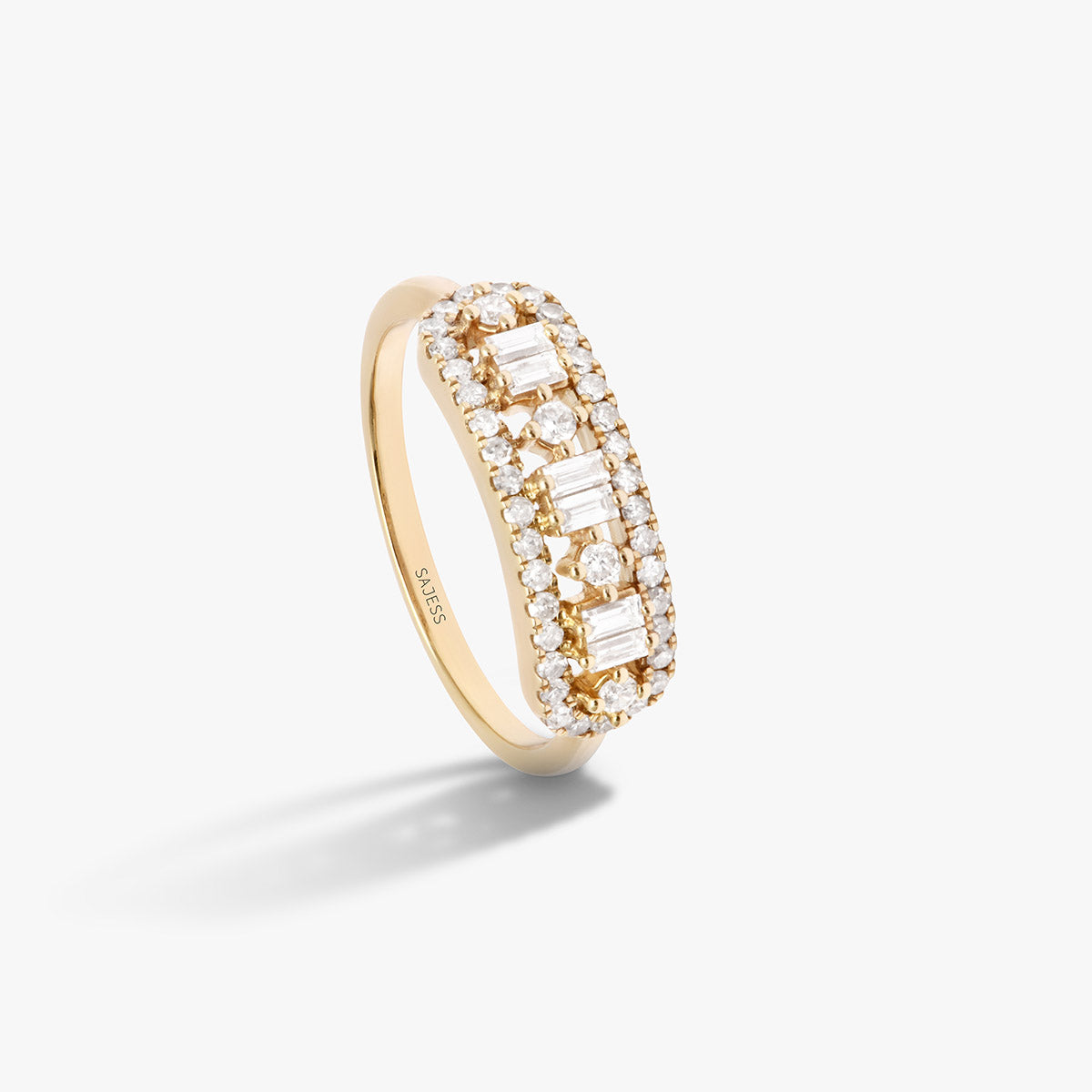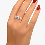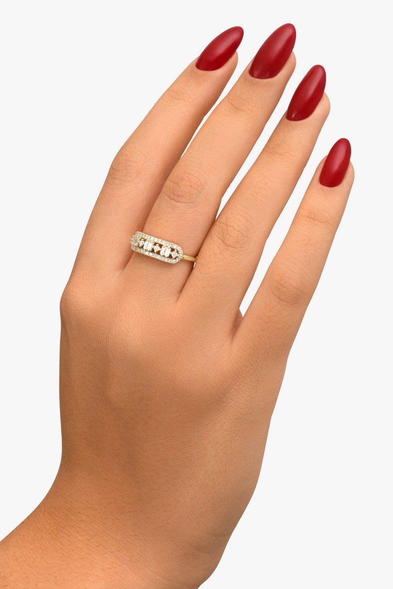 Un chef-d'œuvre d'élégance intemporelle. La bague Rose, ornée de diamants taille baguette fascinants et entourée d'un halo de diamants taille brillant, allie harmonieusement tradition et modernité. Un symbole captivant de l'amour éternel et de la sophistication.